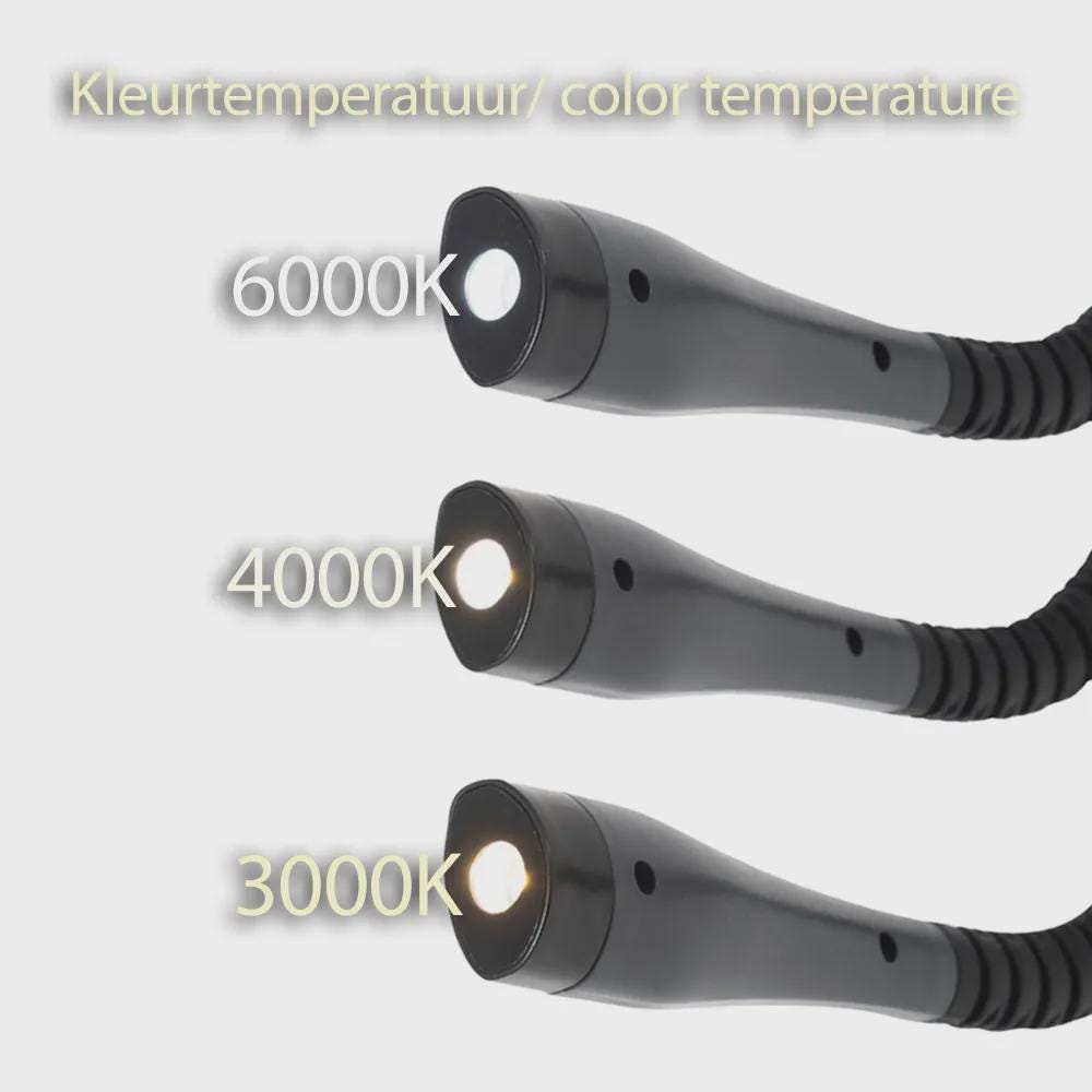 The lamp features a flexible tube with a lamp on either side. The lamps are durable and energy-efficient thanks to the LED technology and have three different dimming settings, so you can always set them to the desired strength: